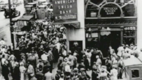 The stock market crash of October 1929 left the American public susceptible to rumors of impending financial disaster. A phenomenon that compounded the nation’s economic woes during the Great Depression was a wave of banking panics or “bank runs,” during which large numbers of anxious people withdrew their deposits in cash, forcing banks to liquidate loans and often leading to bank failure.